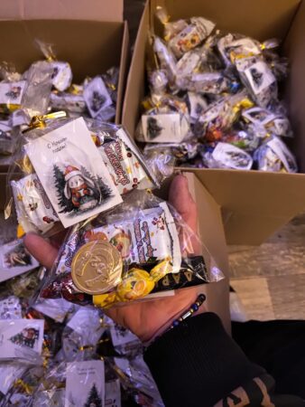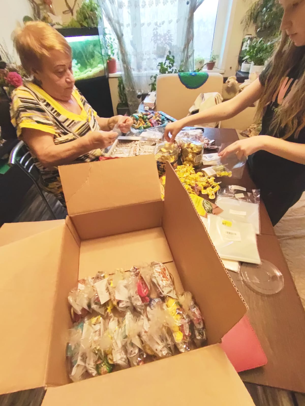 Кроме этого, прихожанка храма Алла Федоровна Андерсен собрала три больших коробки со сладкими подарками и лично привезла их в Ногинский дом престарелых.