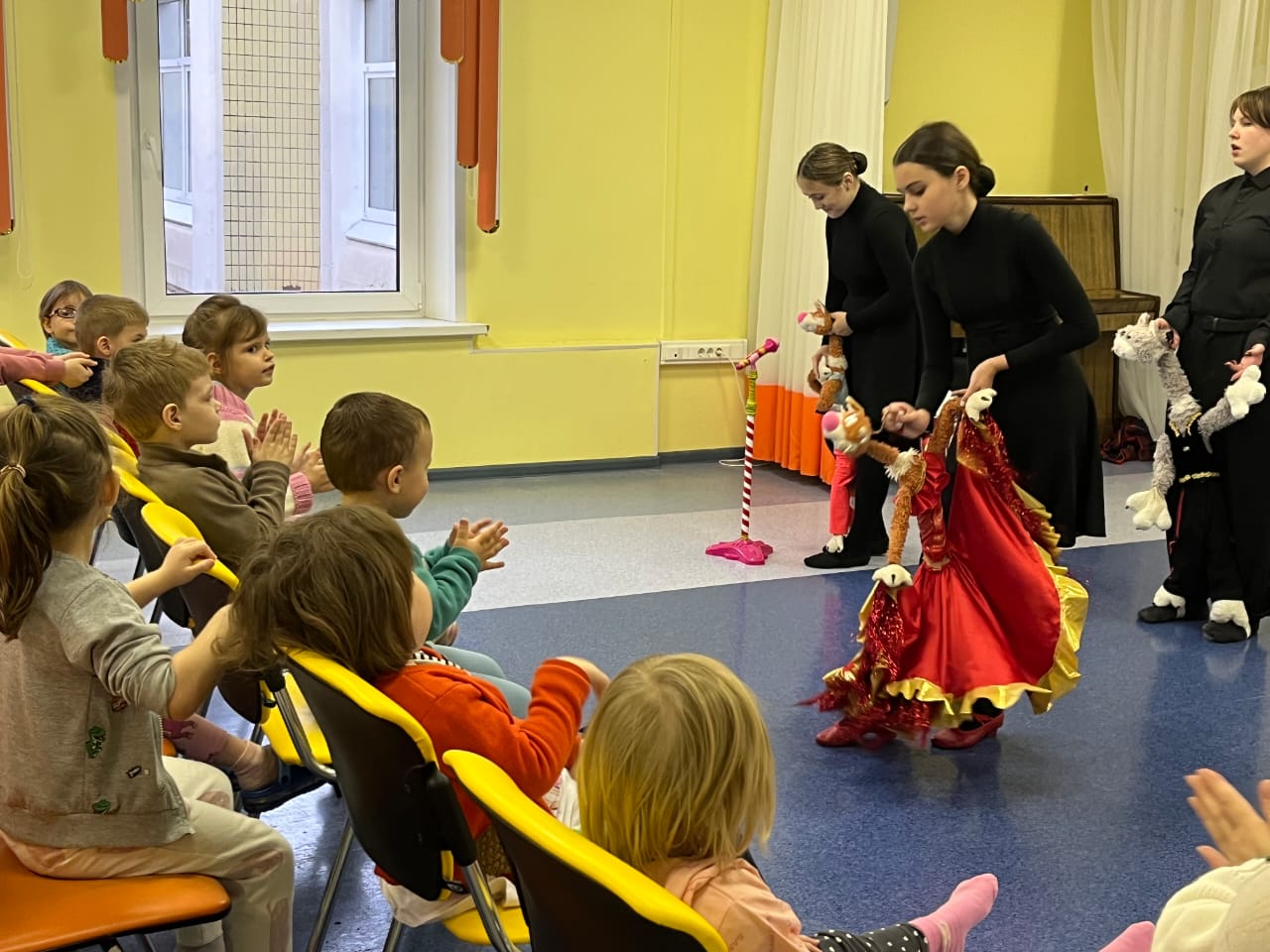 31 октября 2025 года социальная служба храма Живоначальной Троицы в усадьбе Свиблово организовала выступление кукольного театра «В гостях у сказки» им. А.С. Денникова в Центре содействия семейному воспитанию (ЦССВ) «Алые паруса» и Государственном ресурсном центре «Отрадное».