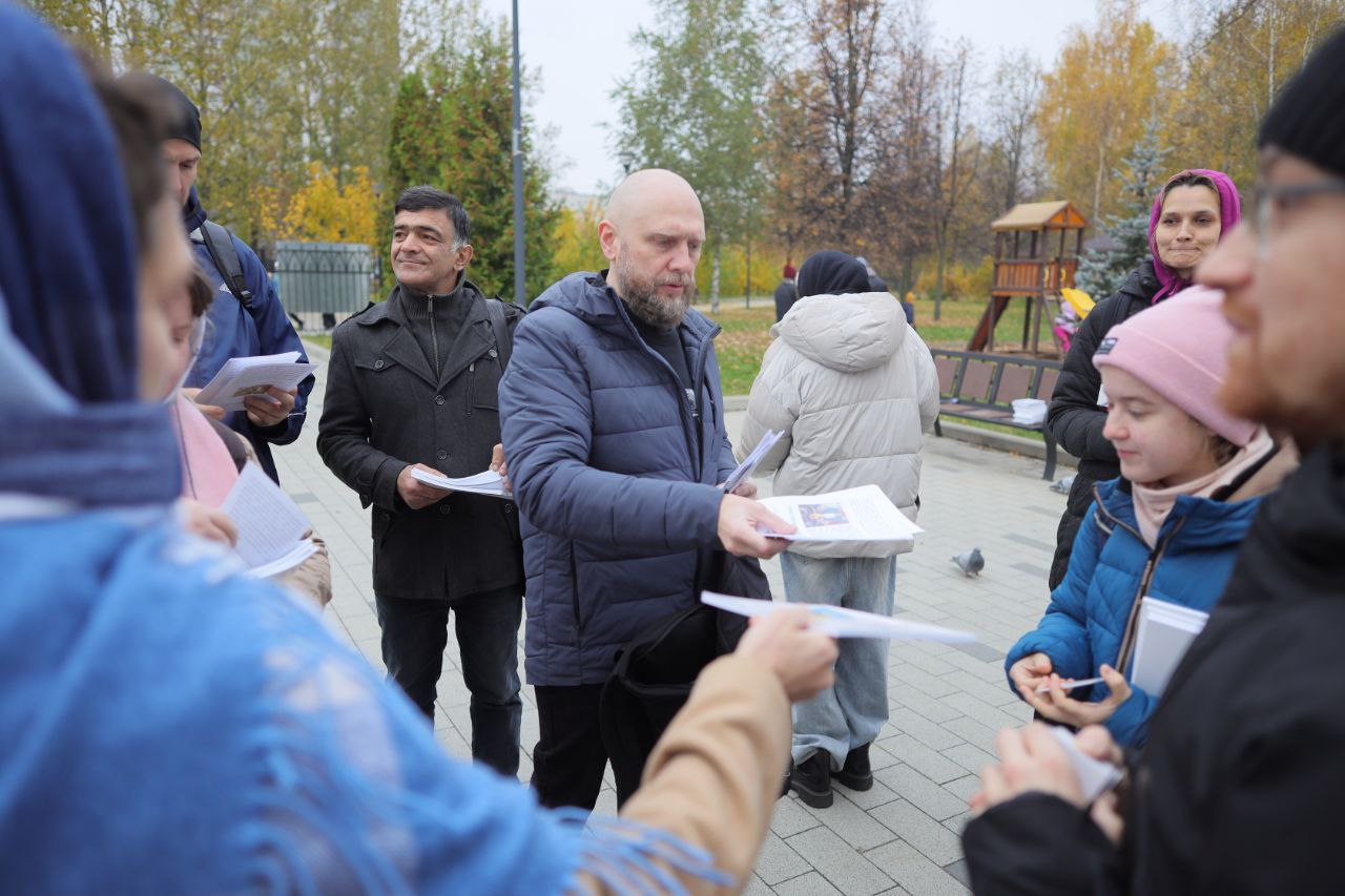 Сначала все собрались в храме на совместную молитву, после чего собравшиеся были распределены по парам и отправились на проповедь. Всего на миссию вышло 12 миссионеров храма.
