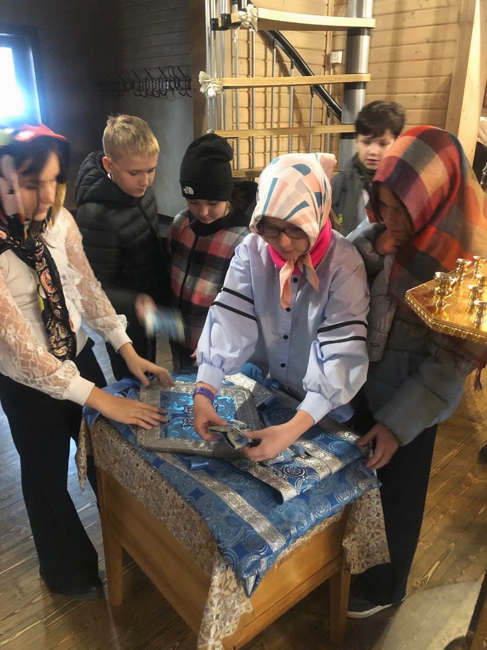 Батюшка рассказал об устройстве православного храма, показал священнические облачения и объяснил символику каждого элемента. Дети не только слушали, но и активно участвовали в беседе: делились своими знаниями о Боге, задавали много вопросов и получали понятные ответы.
