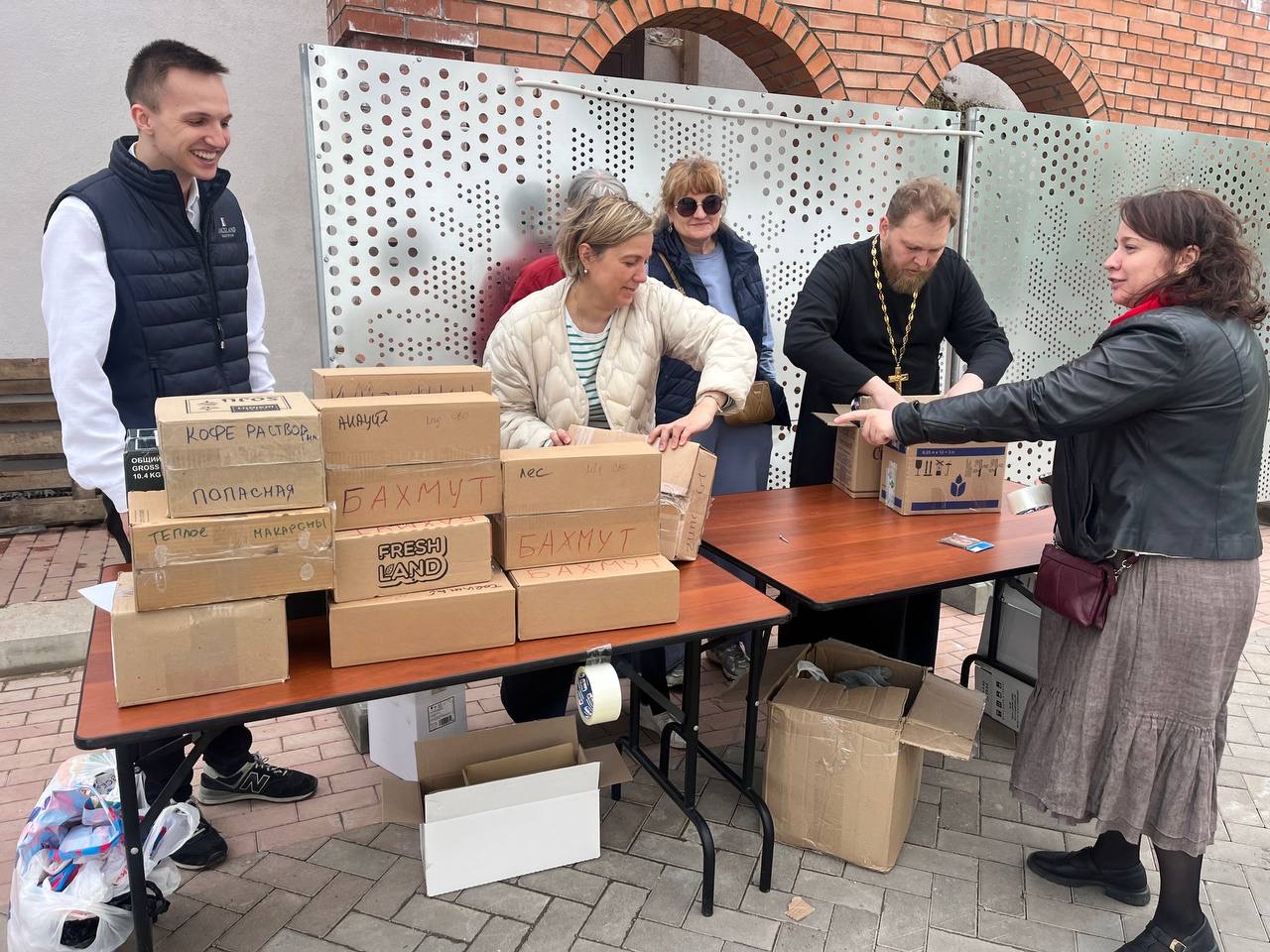 Прихожане вместе с клириком храма иереем Николаем Баланом собрали и упаковали все необходимые вещи и продукты. По коробкам расфасовали питьевую воду, влажные салфетки, чай, кофе, рыбные консервы, печенье, пряники, конфеты, а также сделанные с любовью прихожанами, домашние соленья.