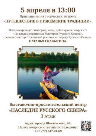 5 апреля 2026 года в 13:00 в выставочном центре «Наследие Русского Севера» при храме преподобного Серафима Саровского в Раеве (проезд Шокальского, д. 48) состоится творческая встреча «Путешествие в Пижемские традиции».