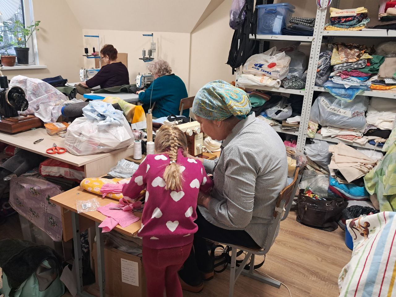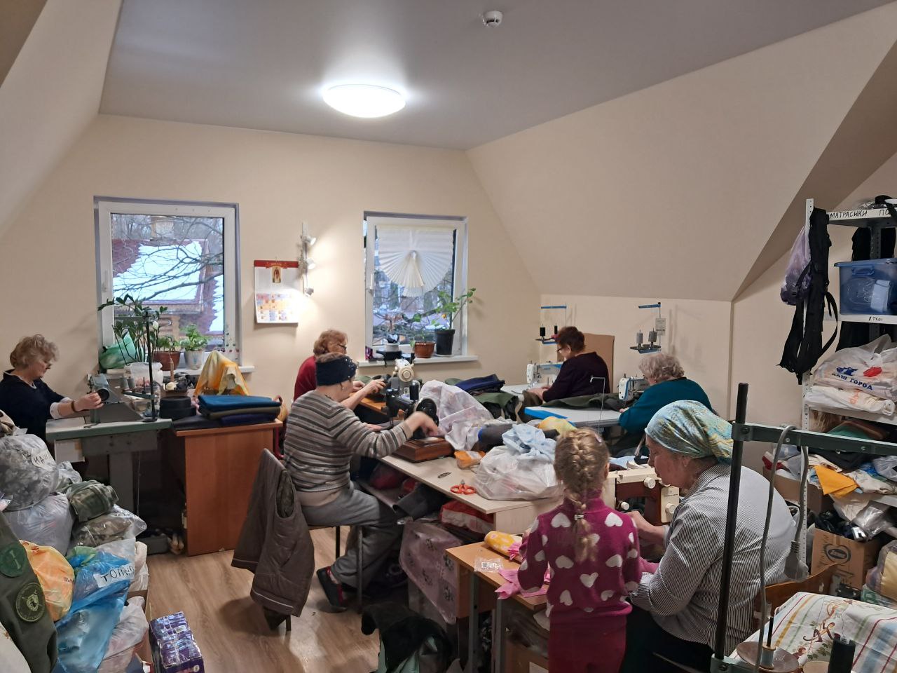В храме святого благоверного князя Александра Невского в Лианозове и в праздничные дни продолжает работать цех по пошиву необходимых вещей для помощи бойцам на передовой и в госпиталях.