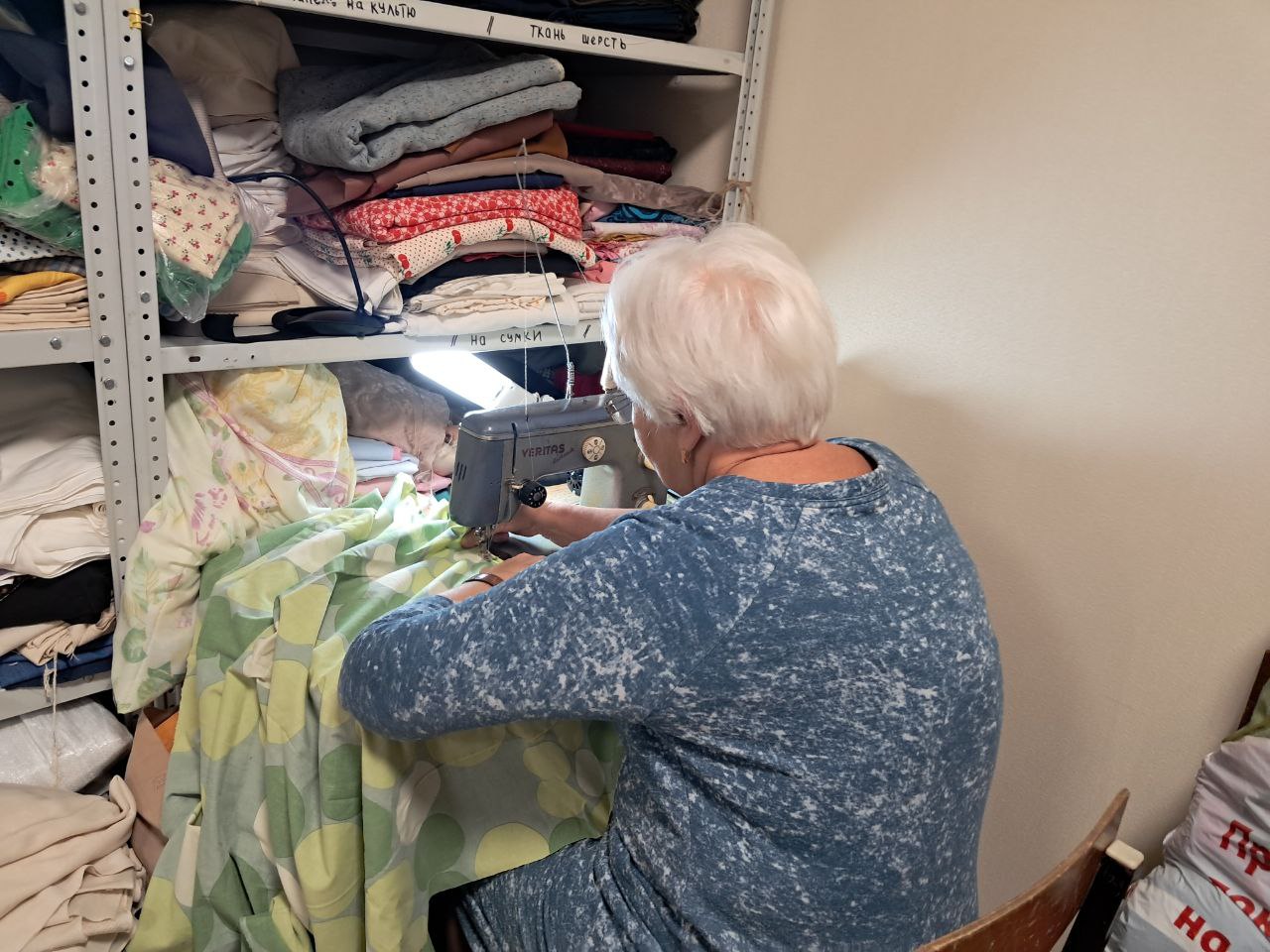 Волонтеры отшивают нательное и постельное белье, подушки ортопедические, матрасы, тактические носилки и прочее.