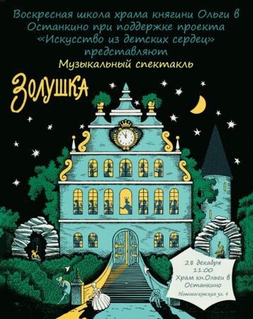 28 декабря 2025 года в 11:00 на территории храма святой равноапостольной великой княгини Ольги в Останкине (ул.Новомосковская, д.4) будет показан детский новогодний спектакль «Золушка».