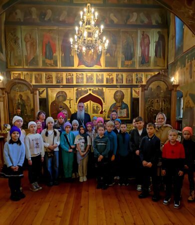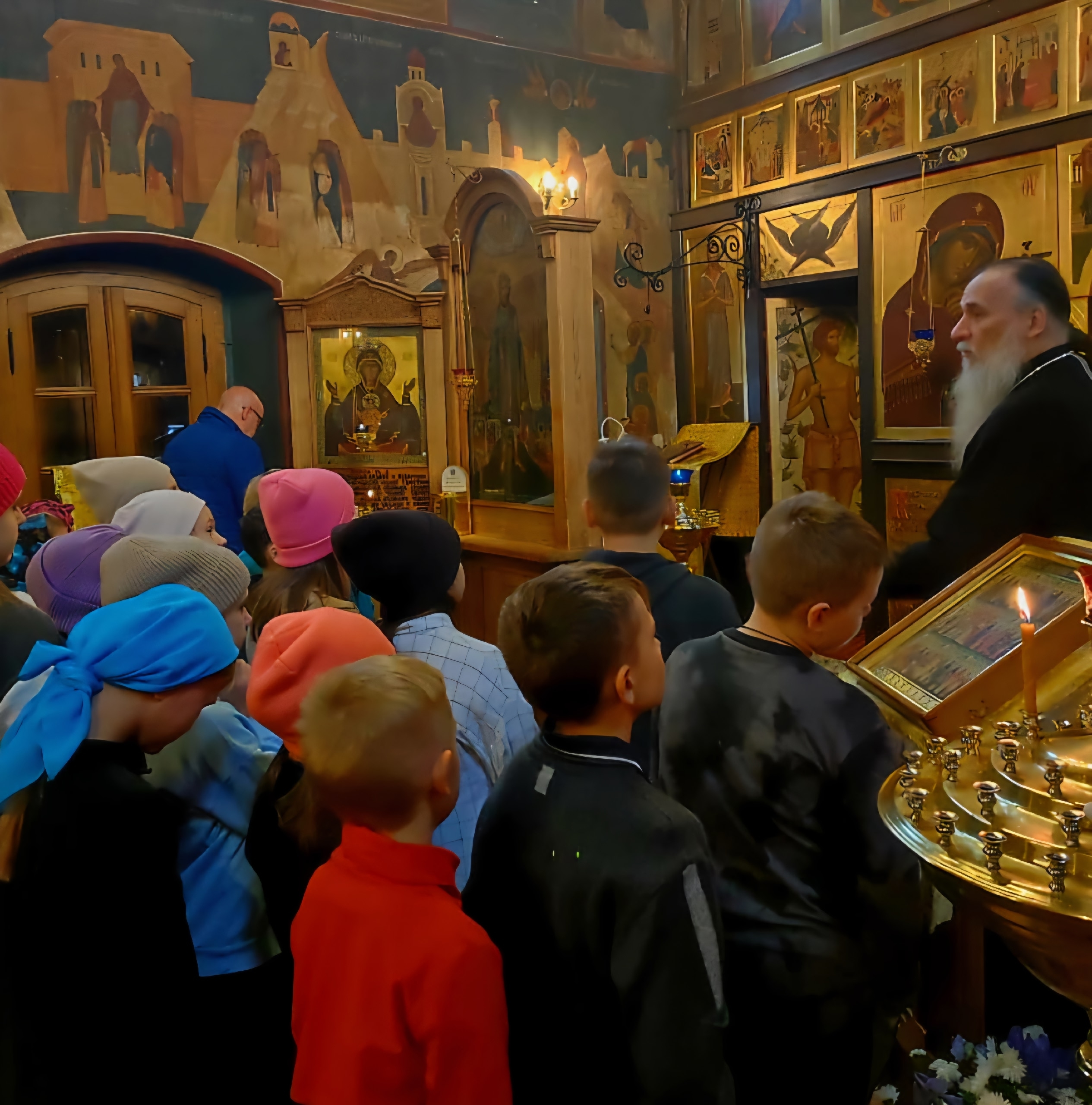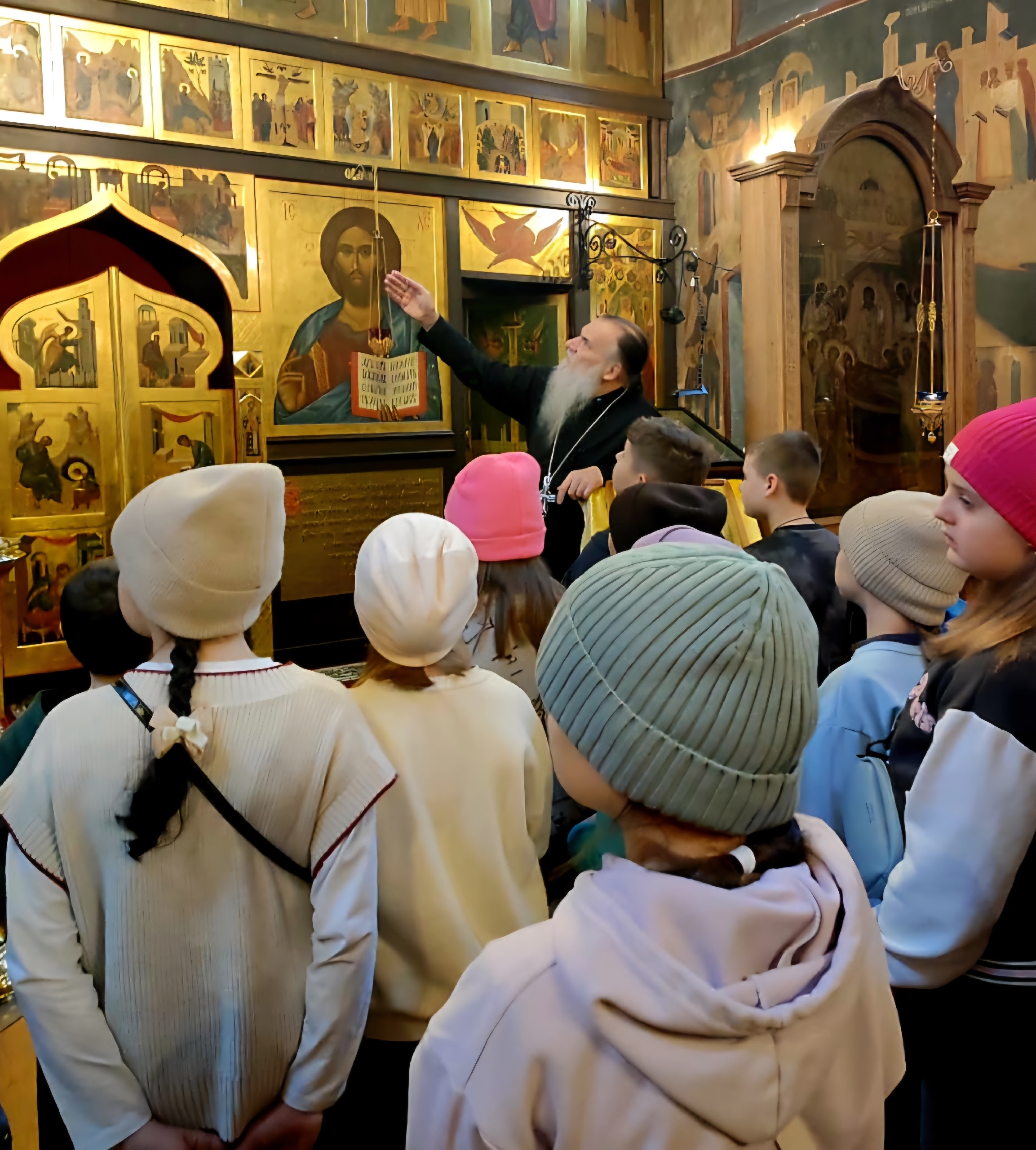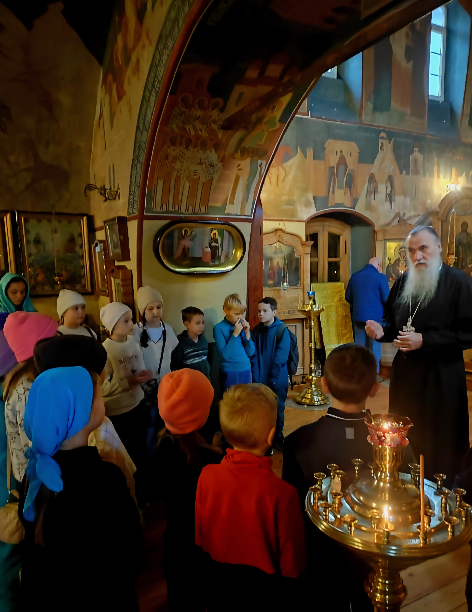 Школьникам было рассказано об устройстве православного храма, об иконах, находящихся в нашем храме, об истории чудесного обретения и обновления образа «Явление Матери Божией преподобному Сергию Радонежскому». Школьники узнали, каким разрушенным был храм до восстановления, и как он преобразился сейчас.