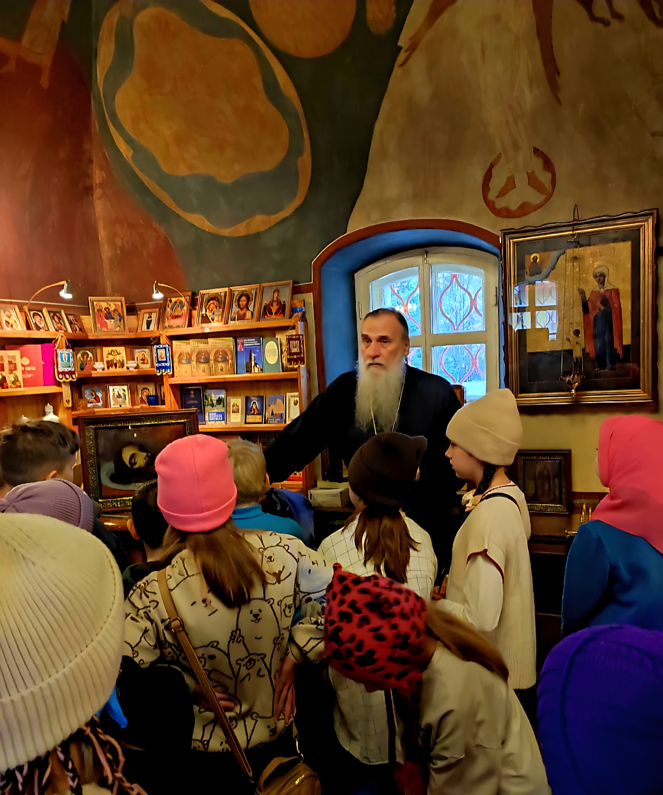 28 октября 2025 года в храме Успения Пресвятой Богородицы в Архангельском-Тюрикове состоялась экскурсия для учащихся 4-х классов школы № 709, изучающих предмет «Основы Православной культуры». Экскурсию провел настоятель храма протоиерей Константин Буфеев.