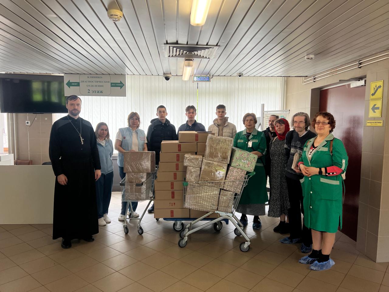 Благодаря общим усилиям прихожан были собраны подарки: пасхальные куличи от Данилова монастыря и пряники ручной работы от храма святых мучеников Адриана и Наталии в Бабушкине.