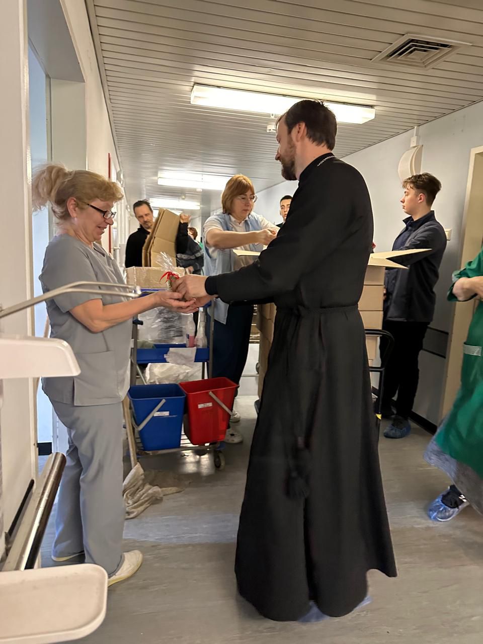 5 мая 2024 года, в праздник Светлого Христова Воскресения, настоятель — Иерей Александр Слесаренко, а также прихожане храма Собора Новомучеников и исповедников Российских Патриаршего подворья в Бабушкине г. Москвы совместно с православной службой помощи «Милосердие» поздравили с праздником раненых солдат, их родственников и сотрудников штаба при госпитале ветеранов войн № 3, а также медперсонал.