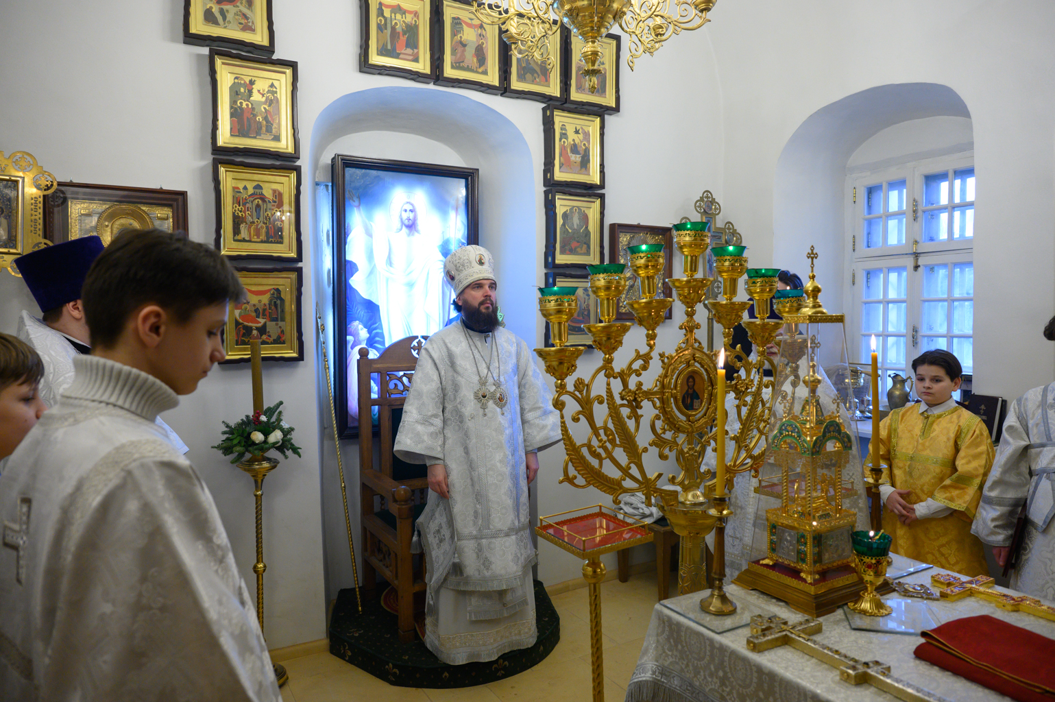 Его Высокопреосвященству сослужили: и.о. руководителя секретариата Северо-Восточного викариатства иерей Сергий Бычков, а также клирики храма Живоначальной Троицы в Усадьбе Свиблово протоиерей Сергий Рождественский и иерей Димитрий Горбик.