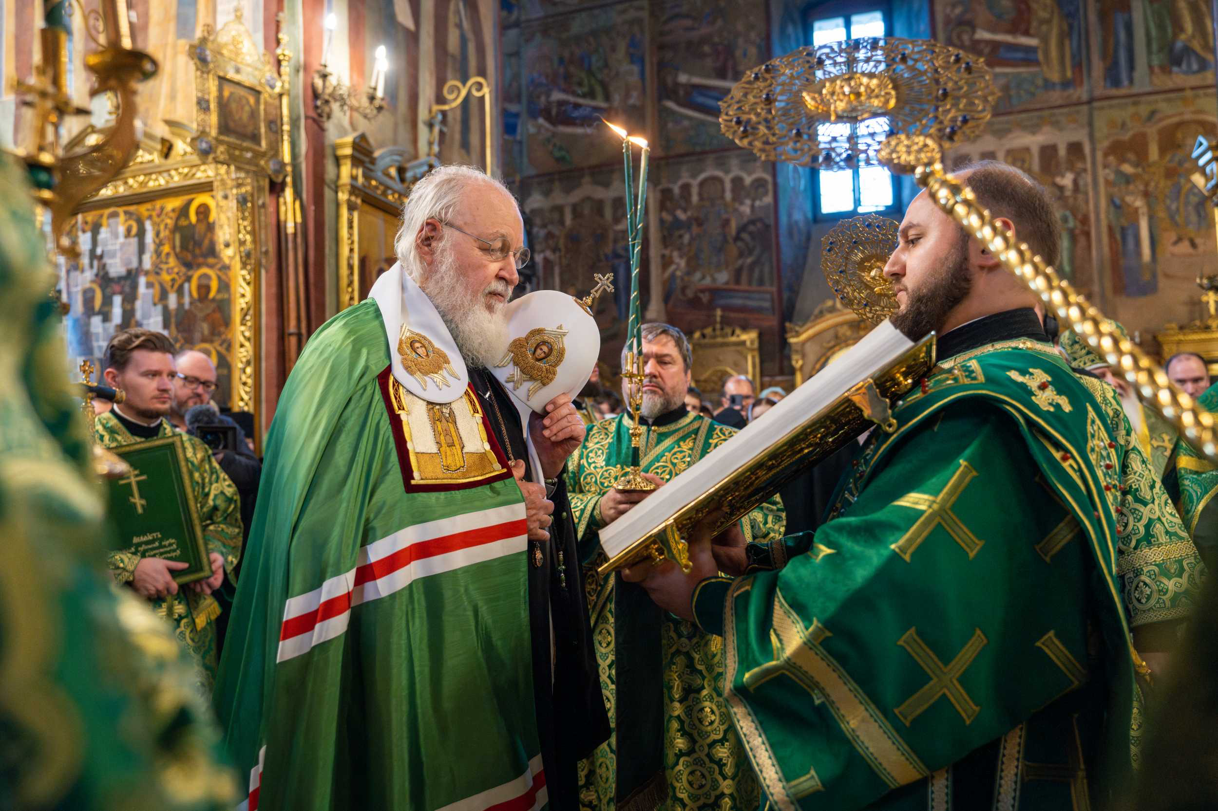 На сугубой ектении были вознесены особые прошения, Предстоятель Русской Церкви прочитал молитву о Святой Руси.